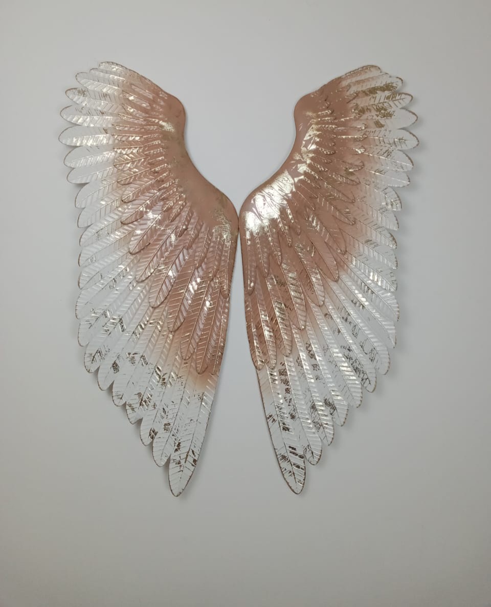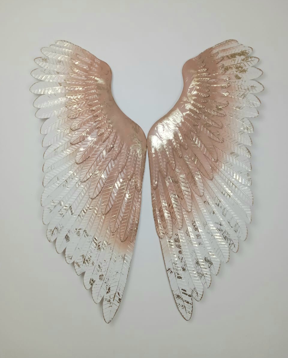 This stunning 4D ART piece features a pair of angel wings meticulously crafted with intricate detail and an elegant gradient finish. The wings transition beautifully from a soft rose gold at the top to a shimmering white at the bottom, with exquisite texturing that catches and reflects light, creating a dazzling effect. The delicate feather-like structures impart a sense of grace and ethereal beauty, bringing a serene and celestial atmosphere to any room. This wall art piece serves as a profound symbol of protection, freedom, and inspiration, making it a captivating addition to any décor.