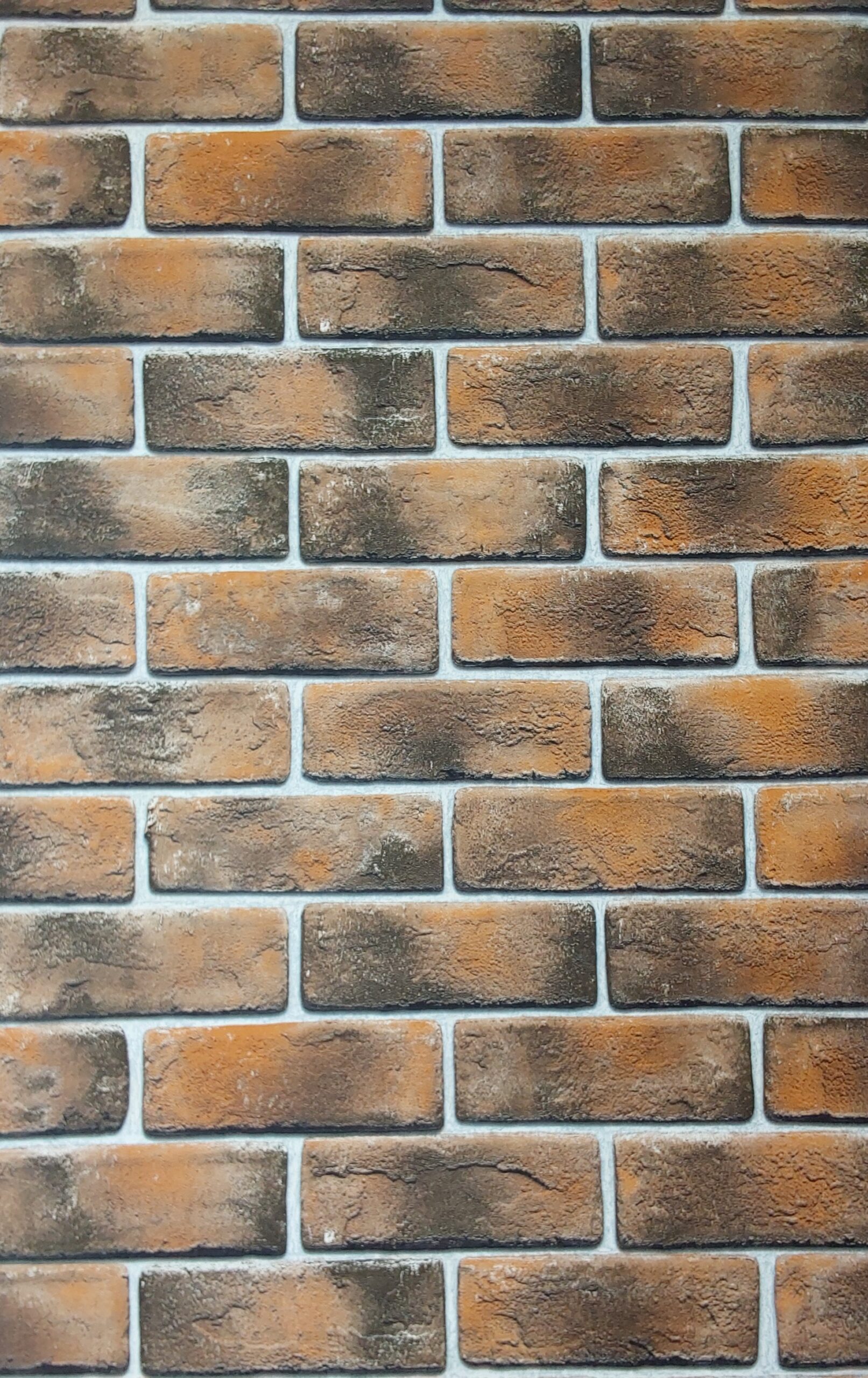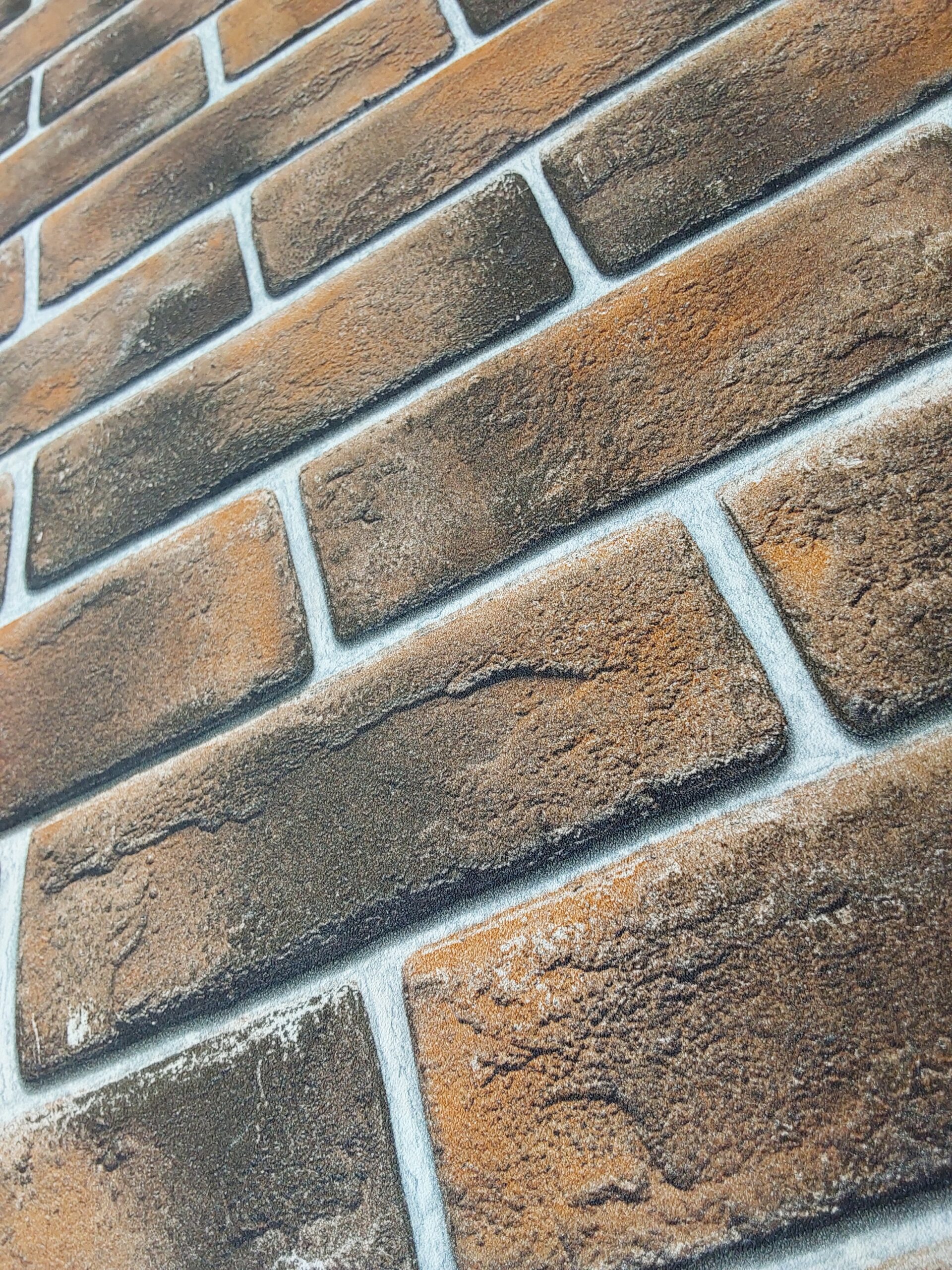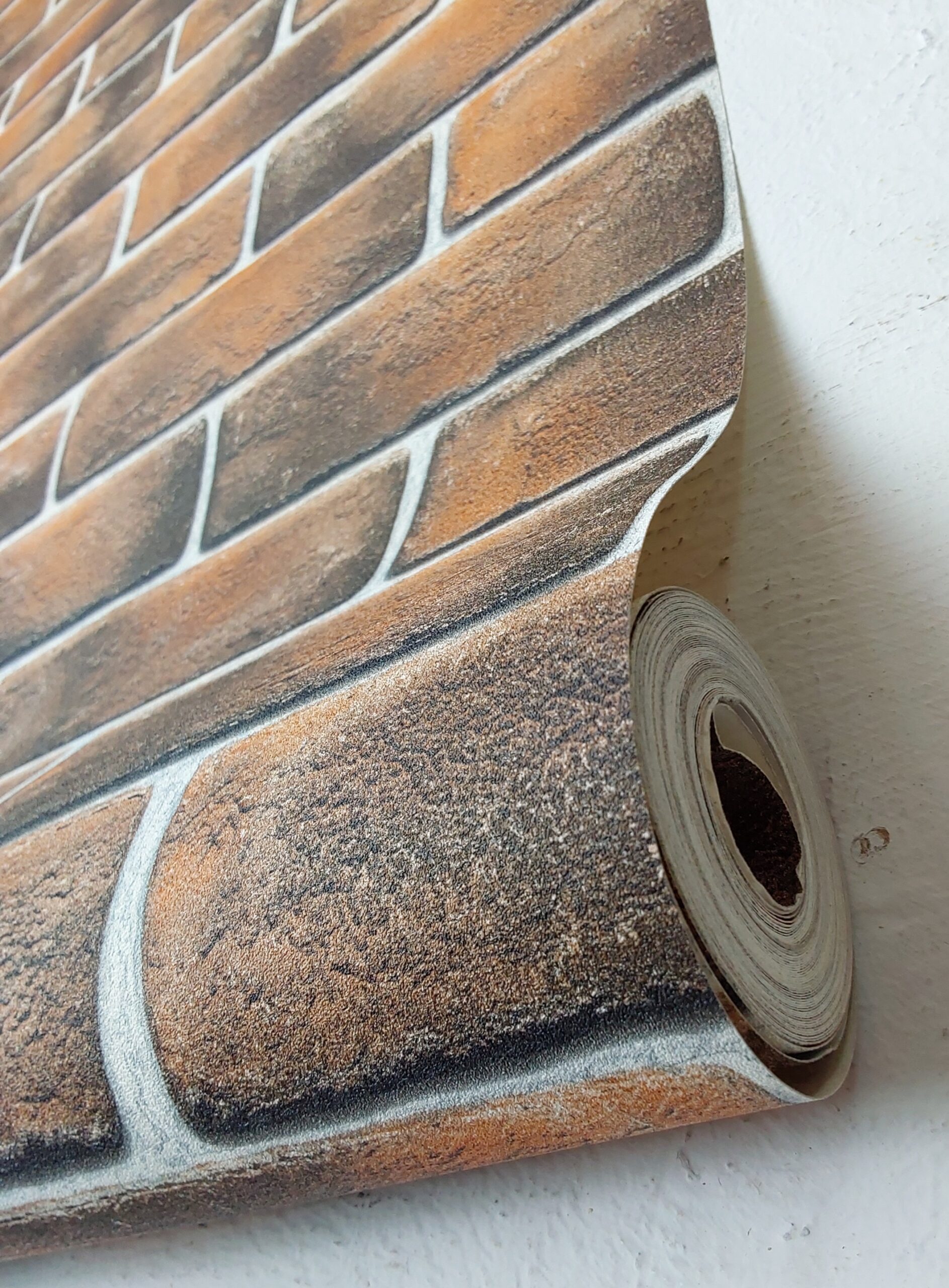 Orange, grey, black, and white brick wallpaper combines a vibrant orange hue with neutral tones and accents like grey, black, and white.