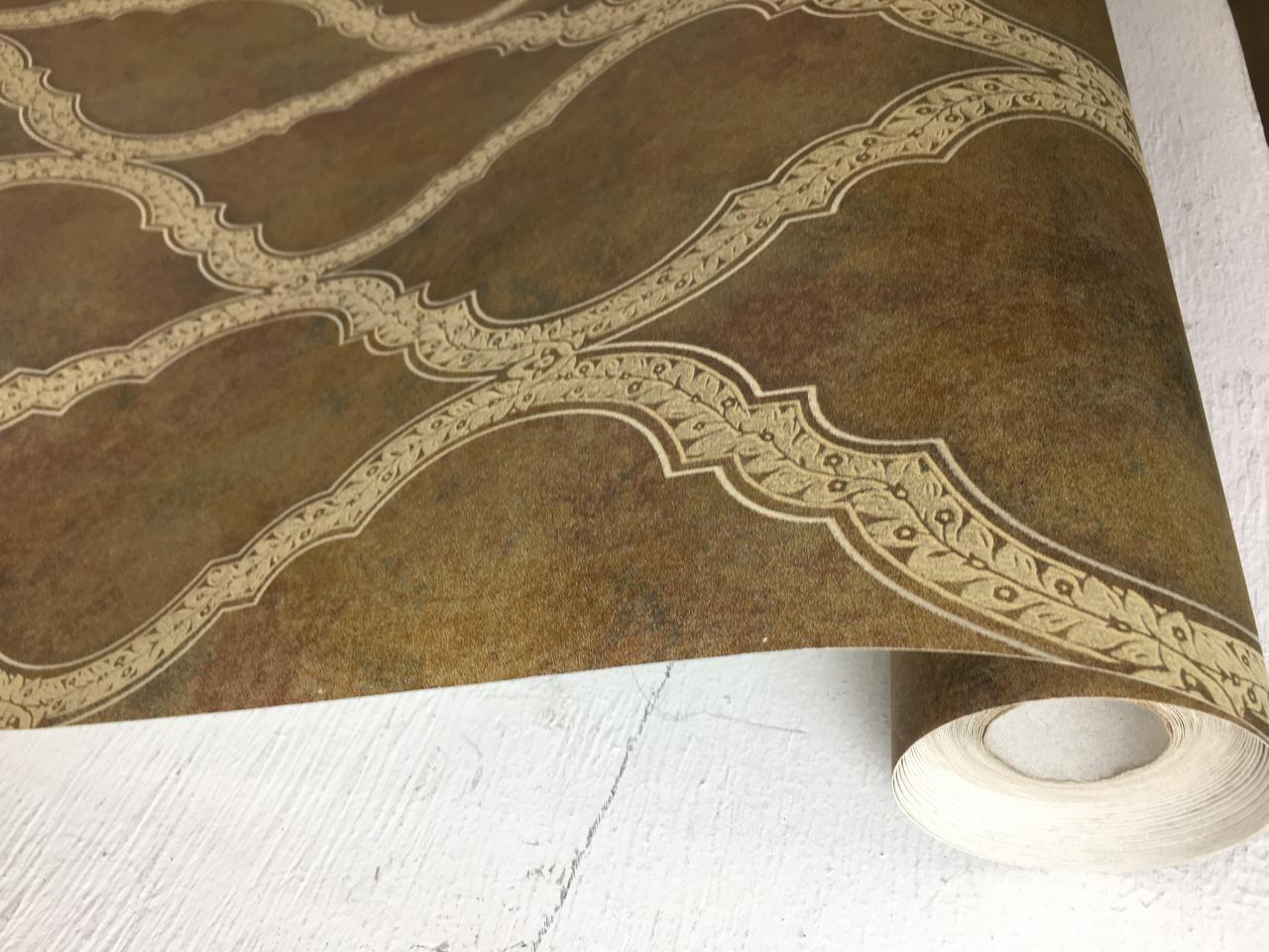 This wallpaper exudes a vintage charm with its intricate, ornate patterns in rich brown and elegant gold tones. The design features an embossed texture that adds depth and sophistication, reminiscent of classic Baroque or Victorian styles. Perfect for adding a touch of luxury to living rooms, bedrooms, or dining areas, this high-quality wallpaper transforms spaces with a timeless and regal aesthetic. Ideal for accent walls or full-room coverage, it enhances any interior with its traditional and opulent design.