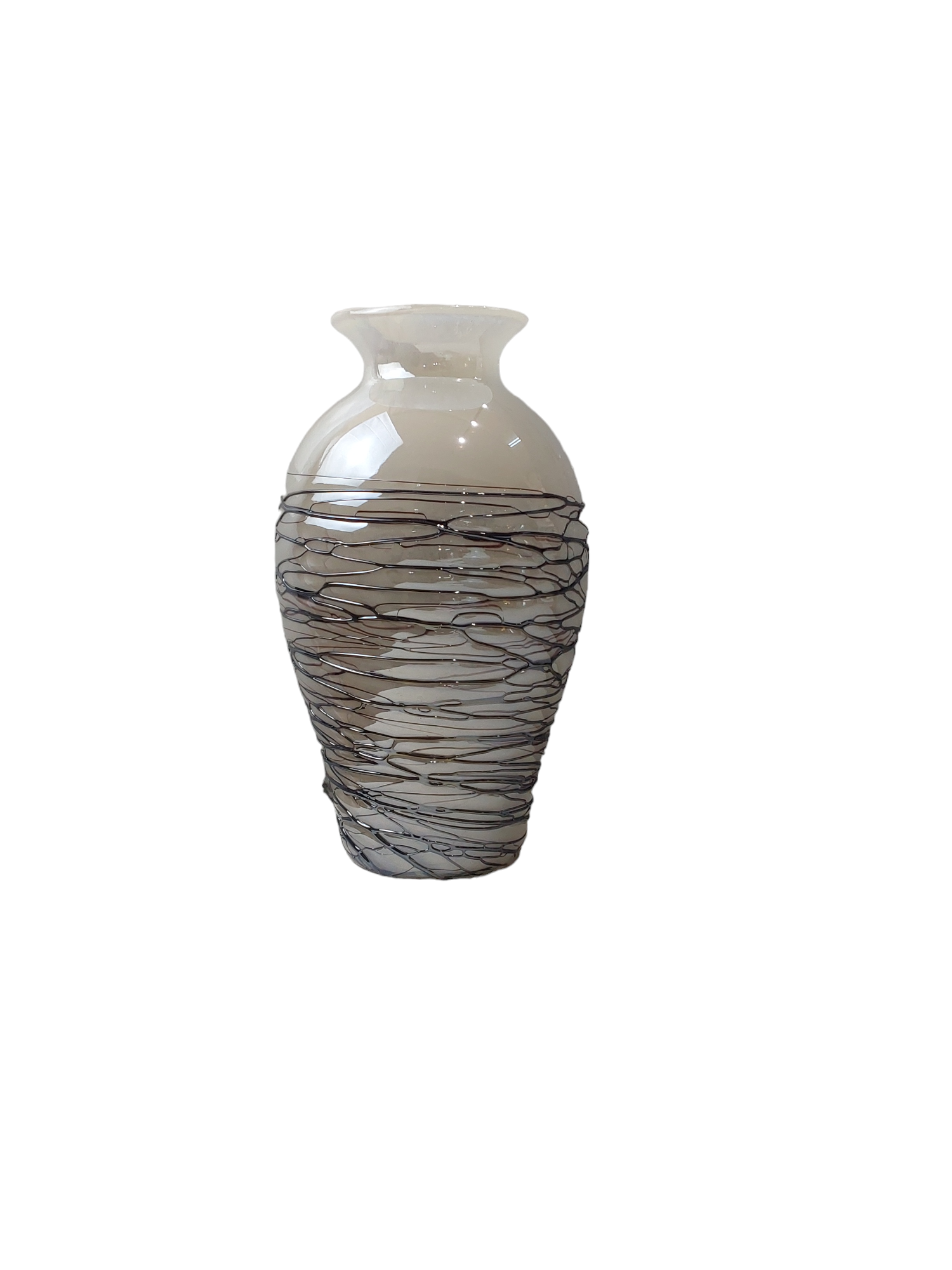 Handcrafted clear glass vase with black swirl design