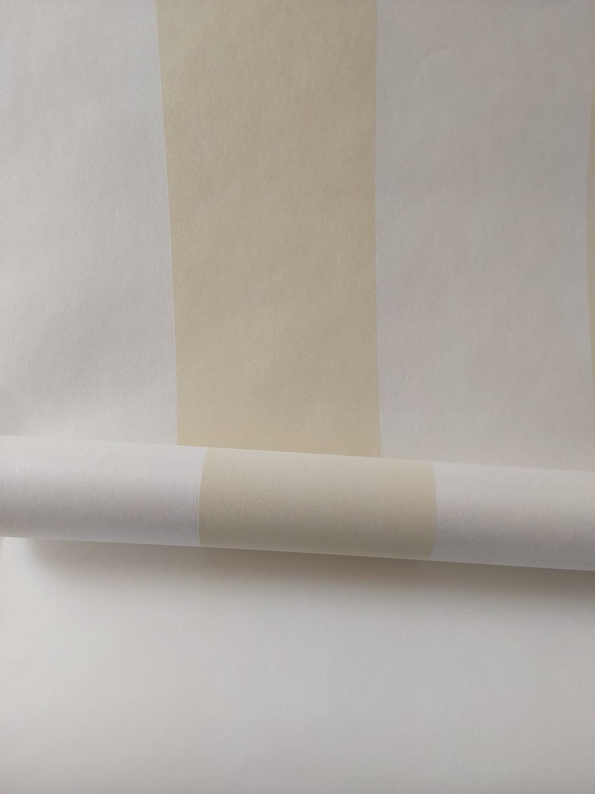 The wallpaper features a minimalist design with soft, muted colors. It has a series of vertical stripes in pale shades—light beige and soft white—which create an elegant and understated pattern. The subtle contrast between the colors adds depth without being overwhelming. This wallpaper would be ideal for creating a serene and stylish atmosphere in a modern space, complementing various decor styles.