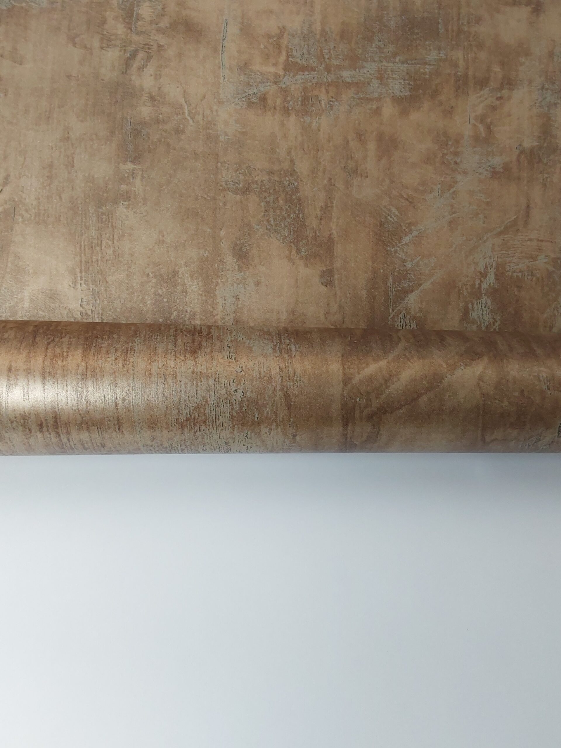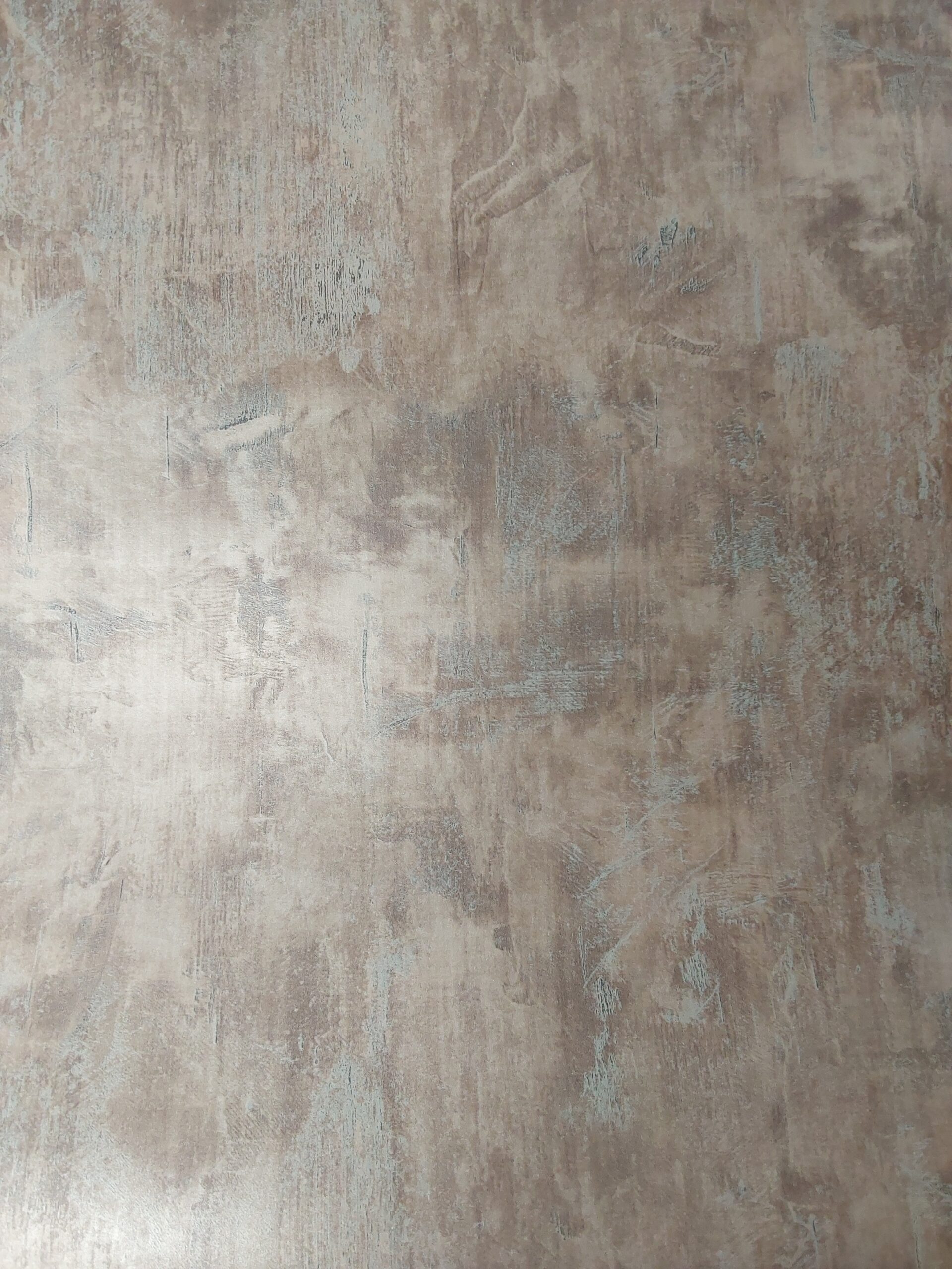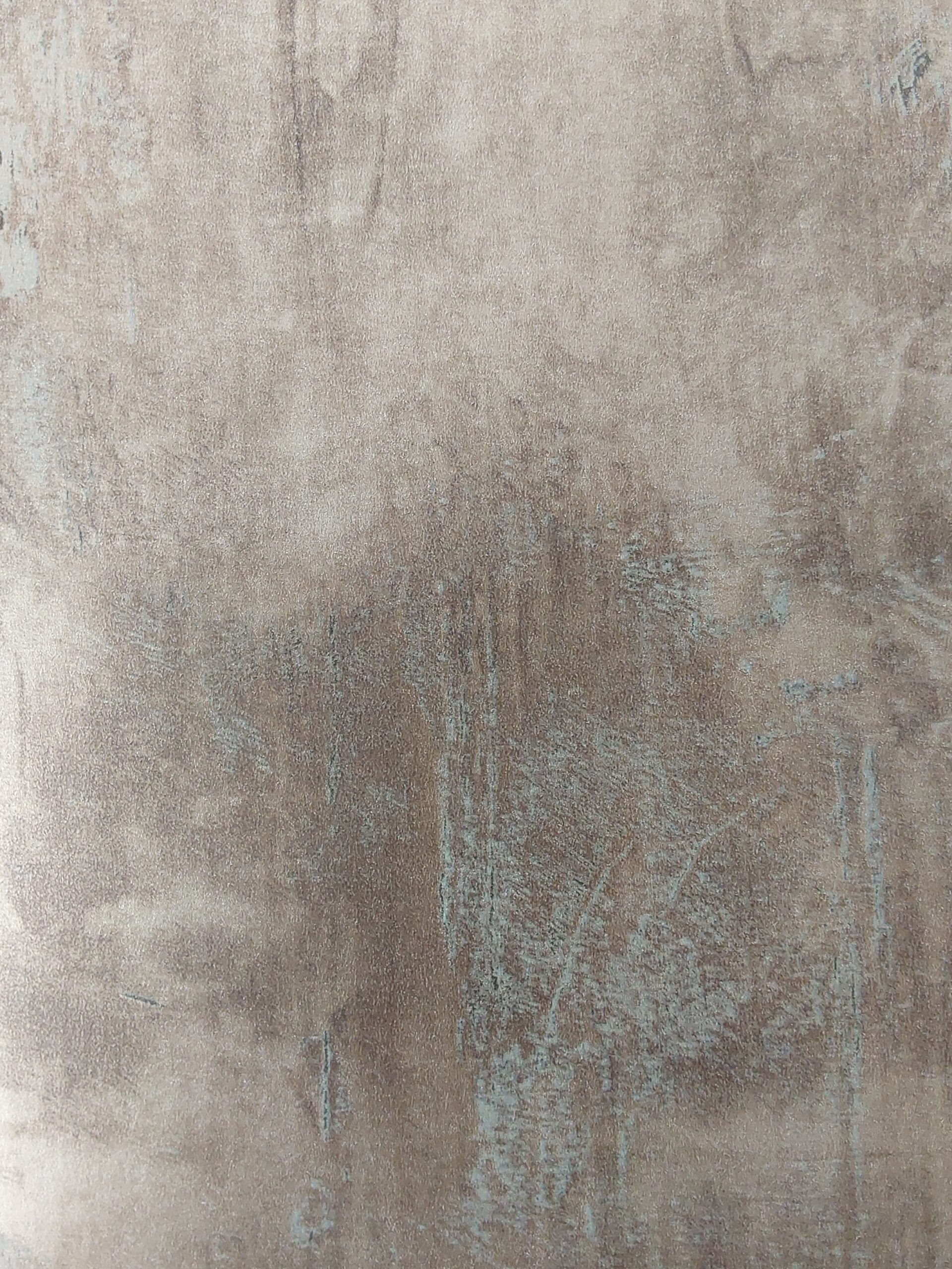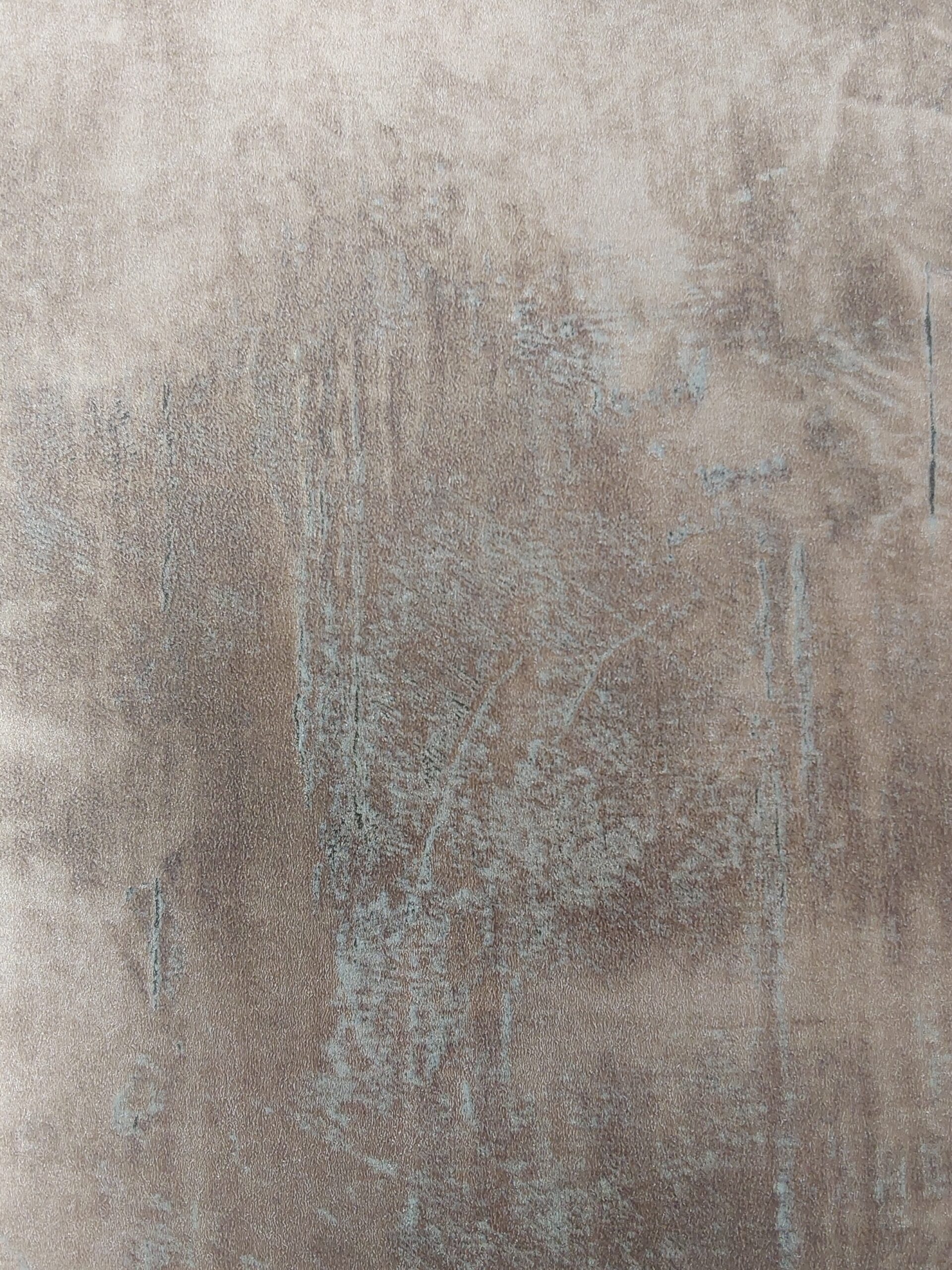 This wallpaper features a textured, muted design with shades of brown and gray. The surface is marked by subtle, weathered elements and hints of turquoise, giving it an organic and somewhat rustic appeal. The interplay of color and texture creates depth, making it a perfect choice for enhancing modern or industrial-inspired interiors. The overall effect is sophisticated yet understated, adding a touch of elegance to any space.