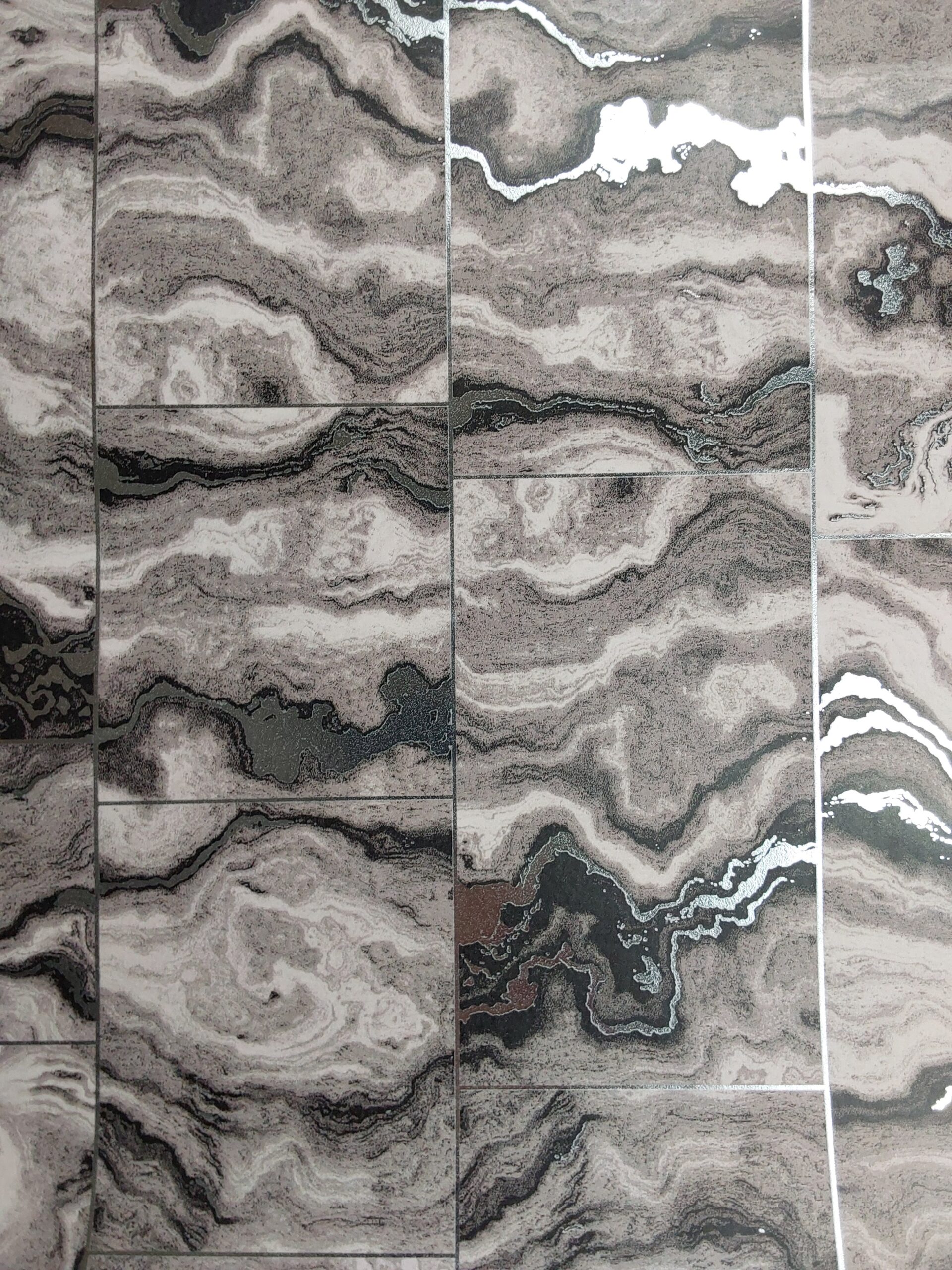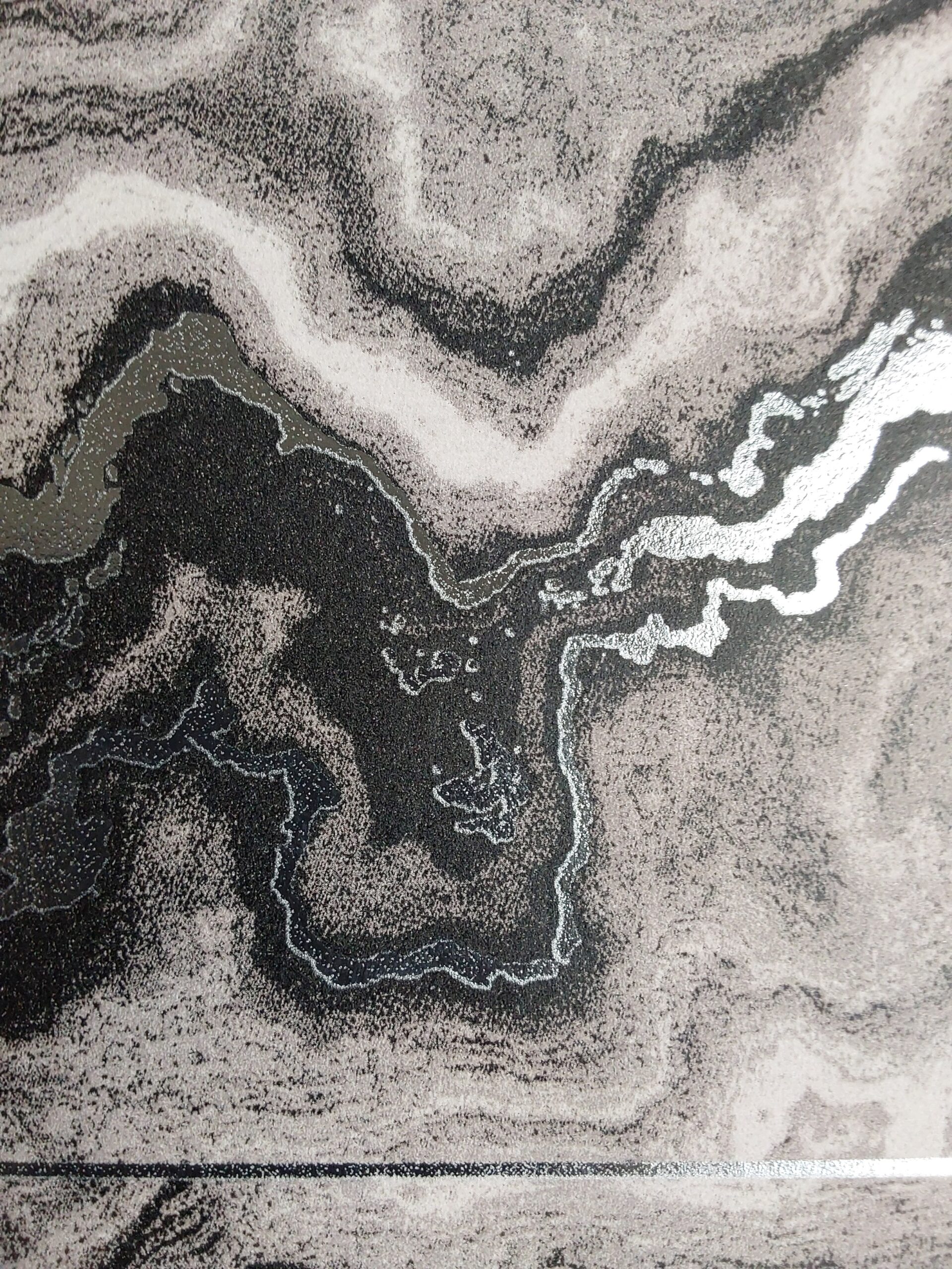 This wallpaper features a luxurious marble design with a stunning blend of soft pink and grey tones. The textured surface is accentuated with metallic silver detailing, creating a modern and sophisticated look. Its unique pattern adds depth and character, making it perfect for accent walls or elegant interiors. Ideal for enhancing bedrooms, living spaces, or offices, this wallpaper brings a touch of contemporary elegance to any room.