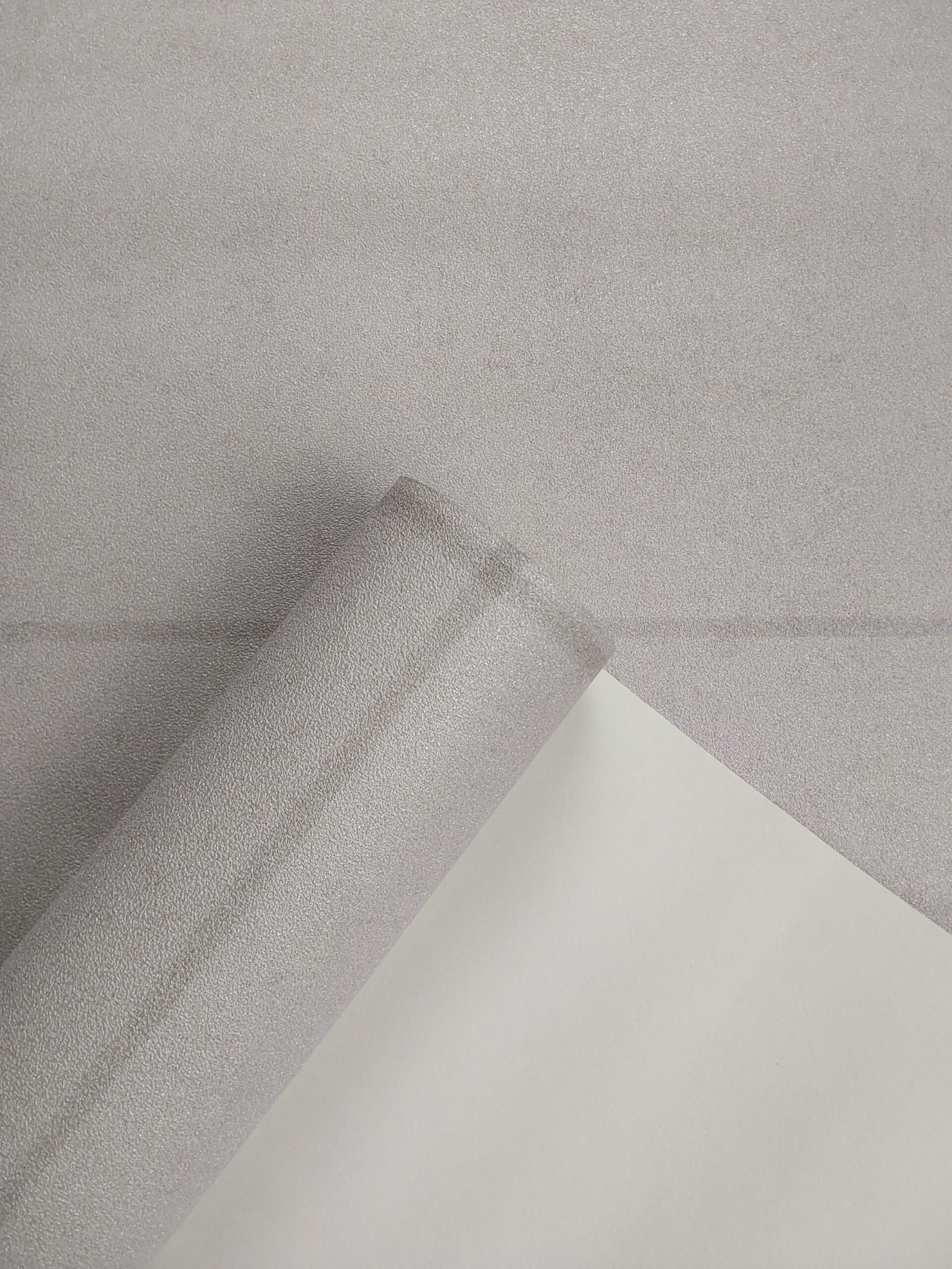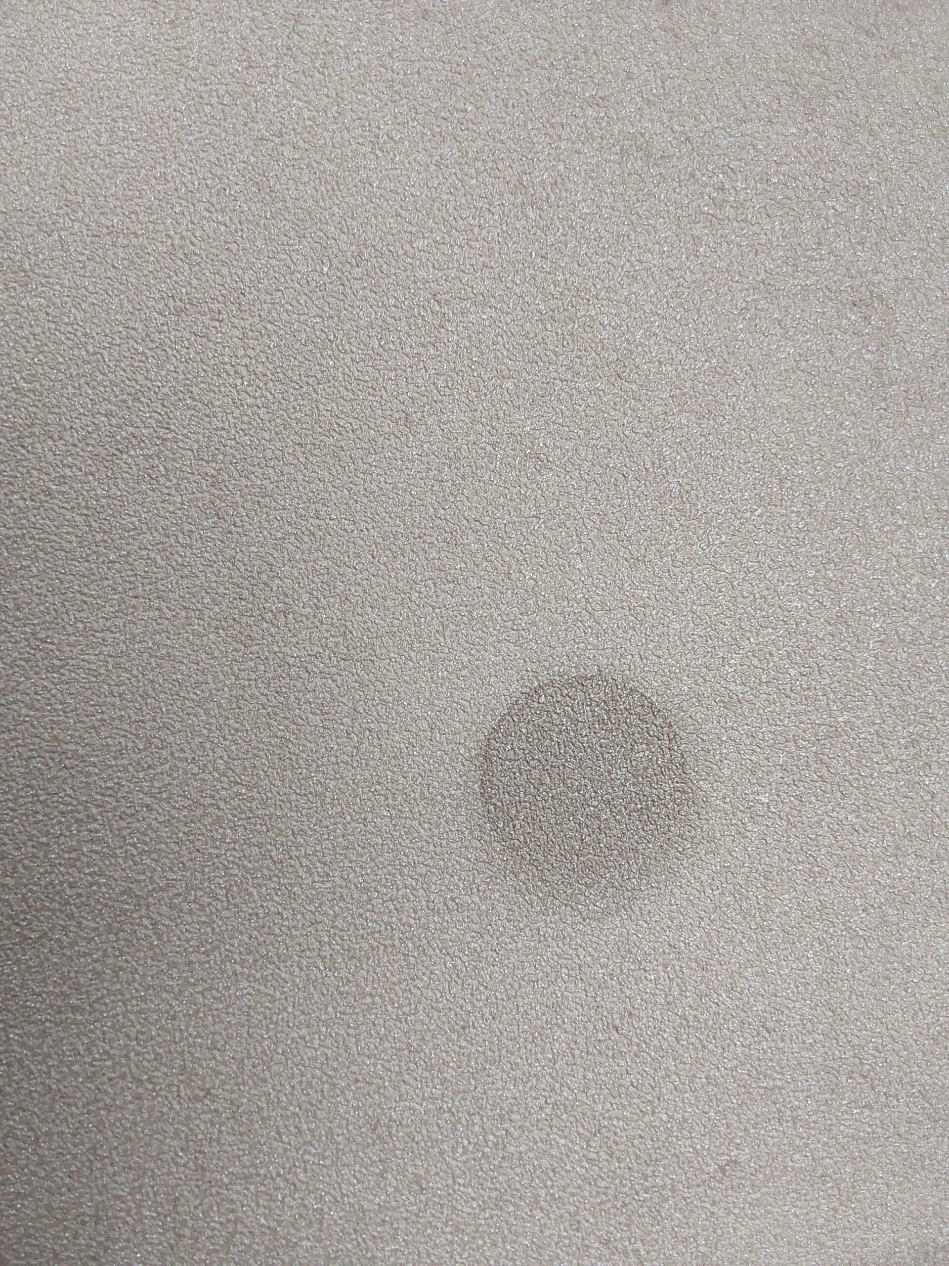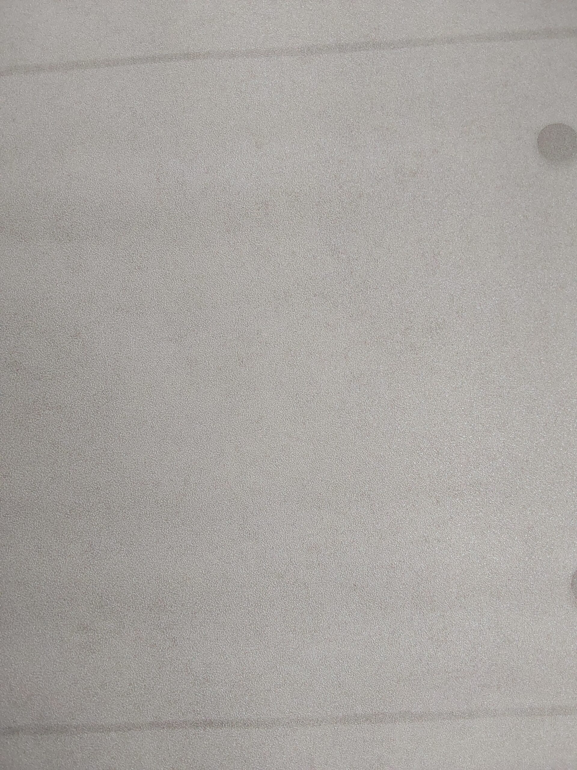 This wallpaper features a soft, textured surface in a neutral shade, likely a light beige or off-white. The fabric-like appearance adds depth, while a noticeable stain in the center suggests some wear or usage. Overall, it presents a subtle, understated aesthetic suitable for various interior designs.