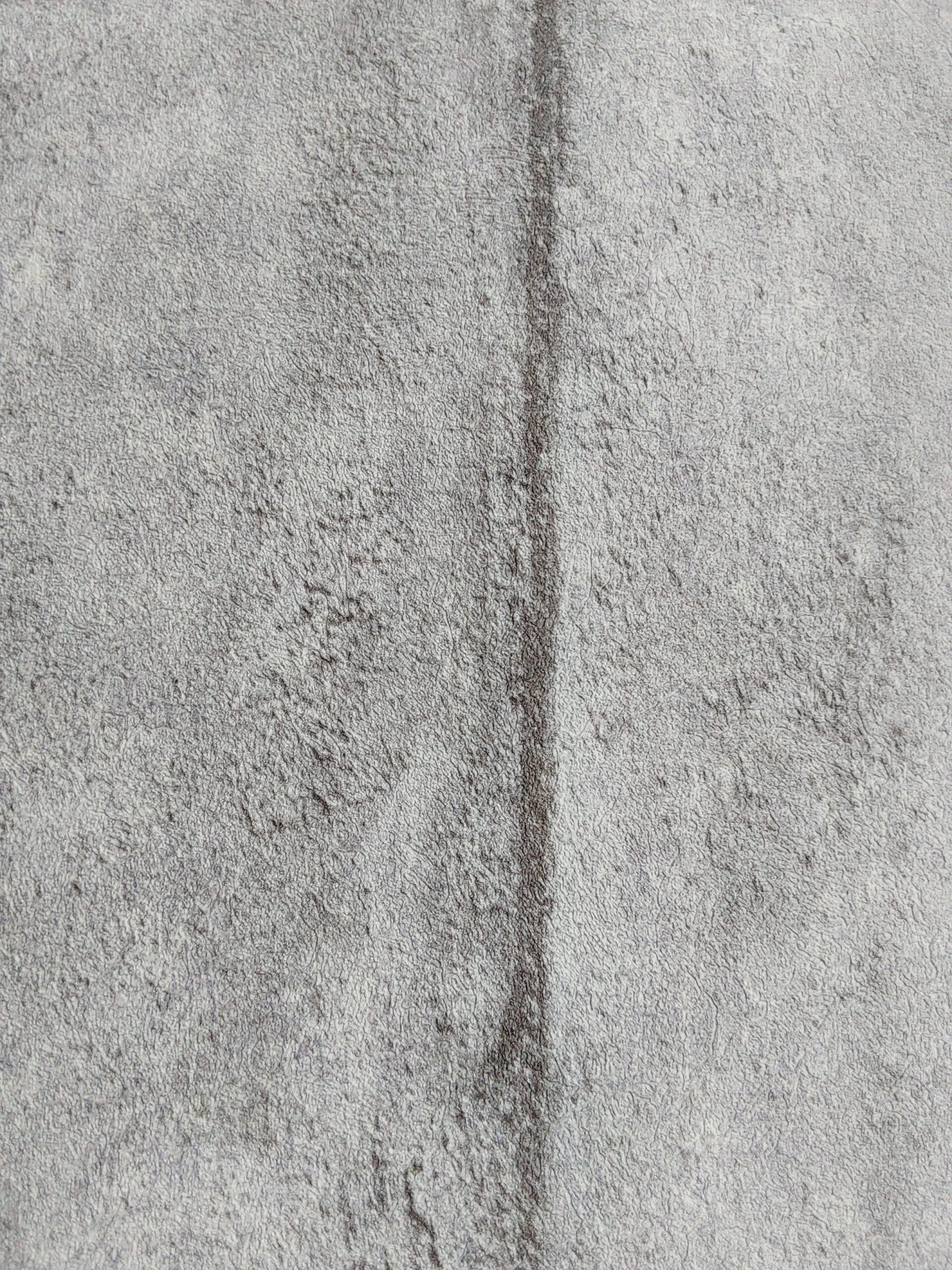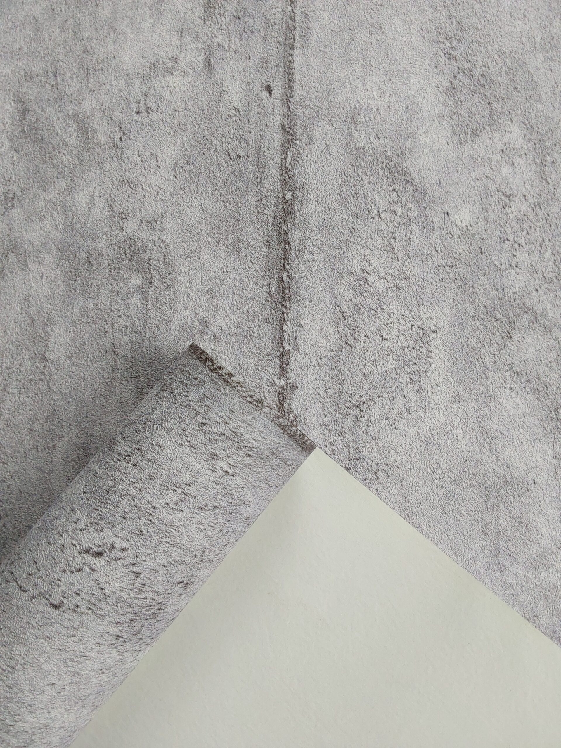 This wallpaper features a subtle, textured surface in a soft gray tone. The overall appearance is minimalist, with a light, fuzzy texture that adds a touch of warmth while maintaining a modern aesthetic. A faint line runs vertically through the center, which could give the design a sense of depth and dimension. This wallpaper would complement various interior styles, including contemporary and industrial, providing a neutral backdrop for furniture and decor.