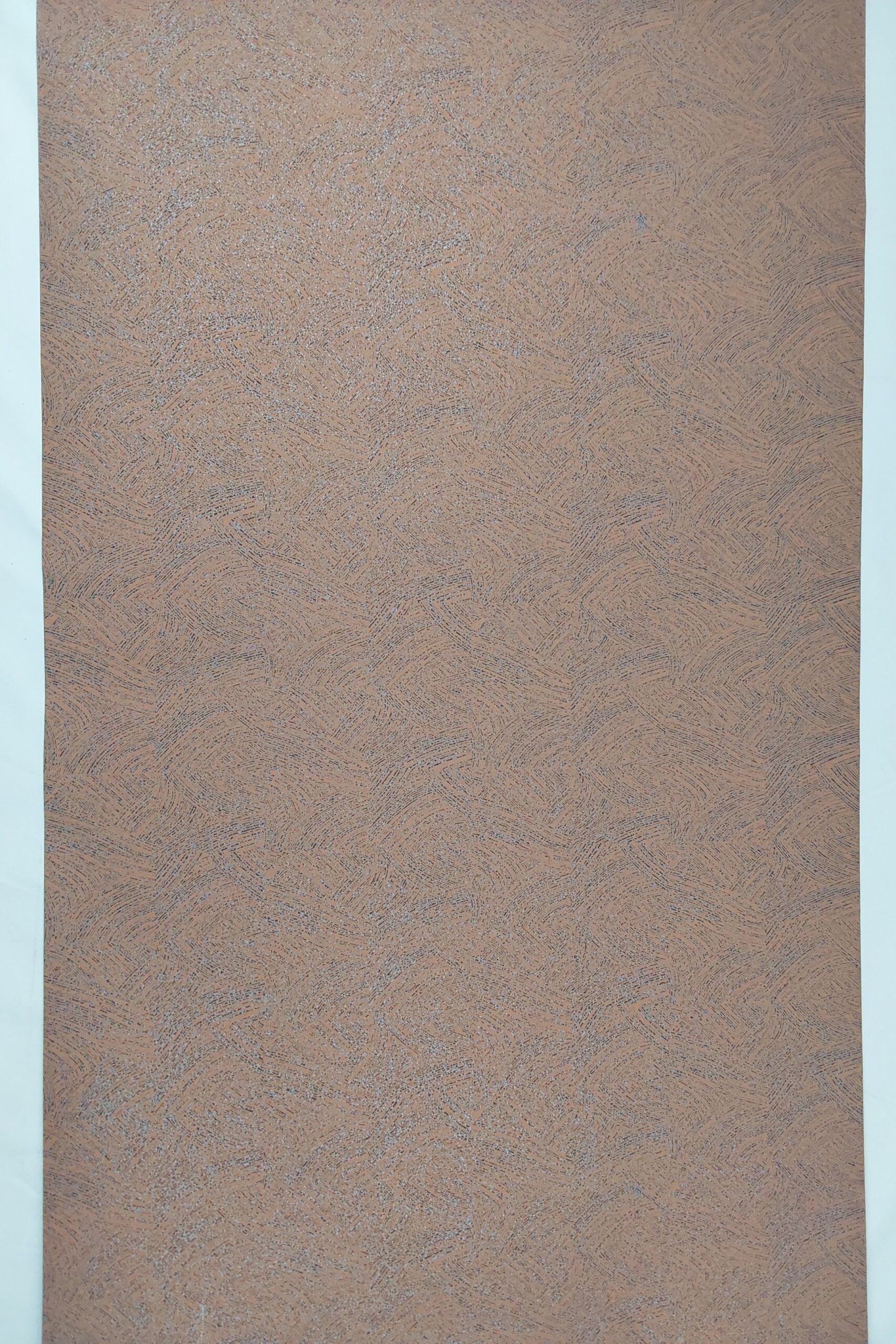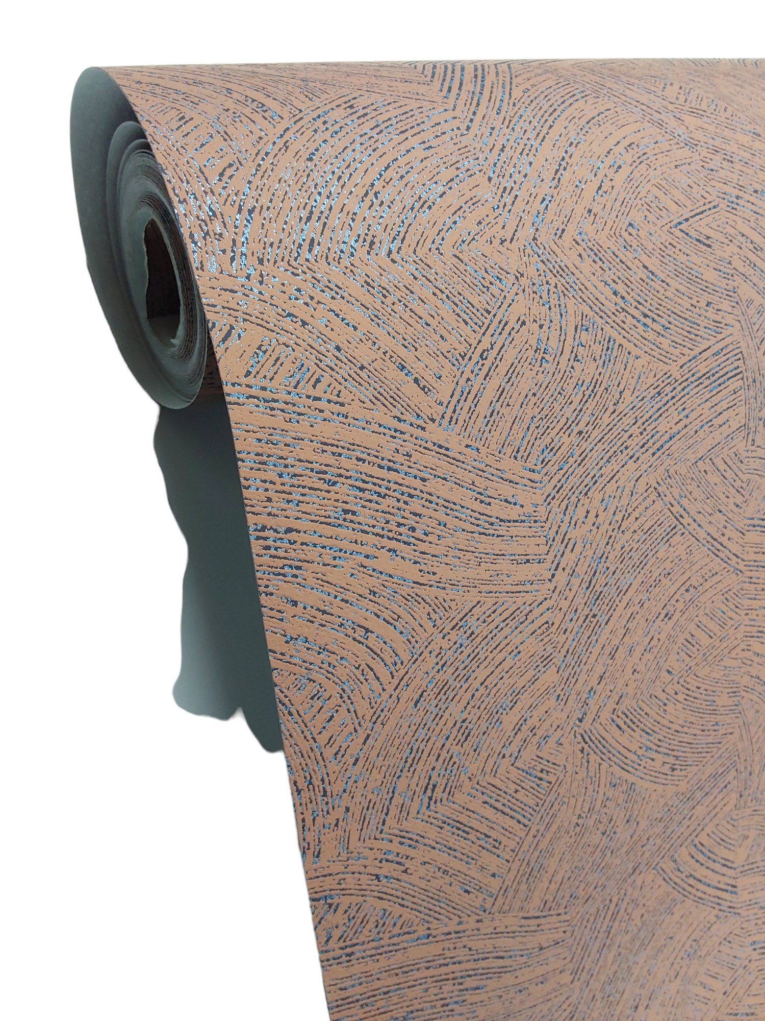 This wallpaper features a textured design with a warm brown tone, interwoven with subtle, shimmering highlights. The pattern consists of intricate swirls and lines, creating a dynamic visual effect that can add depth and warmth to any room. Its neutral color palette makes it versatile for various interior styles, from modern to classic. The overall look is both inviting and elegant, perfect for enhancing walls while maintaining a cozy atmosphere.