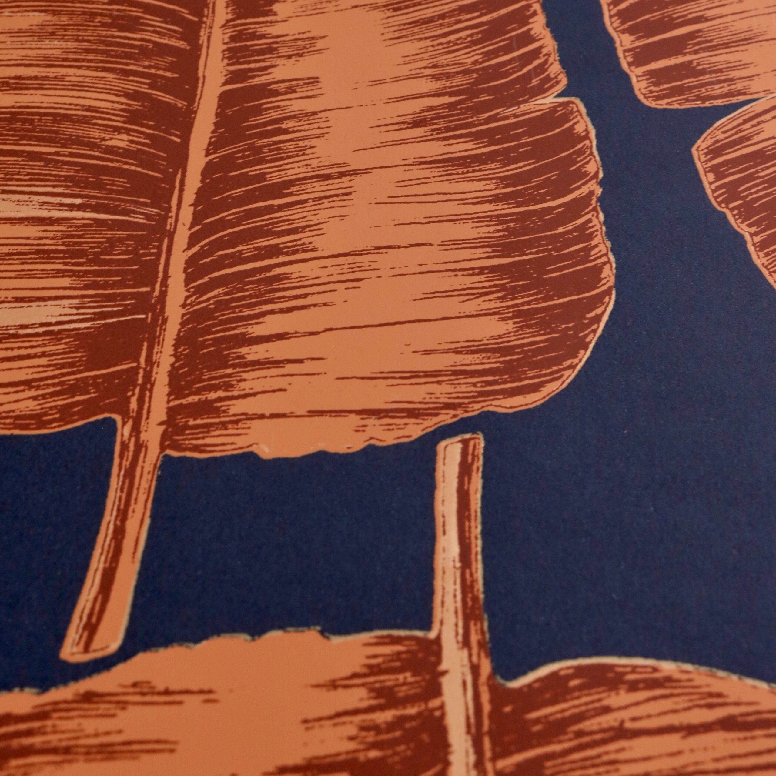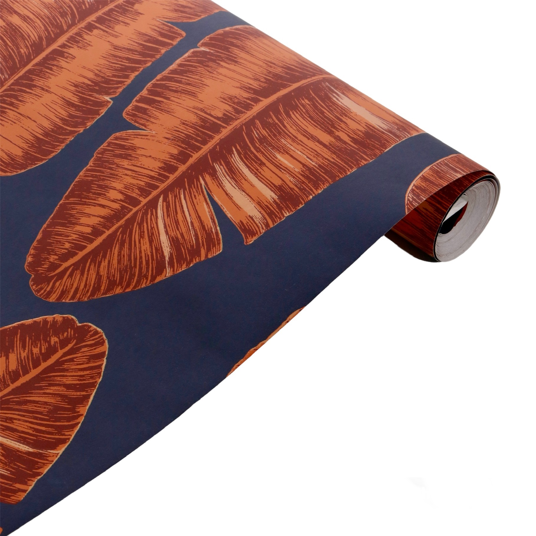 • 1 x 5.2sq m Orange Leaves on Blue Vinyl Wallpaper