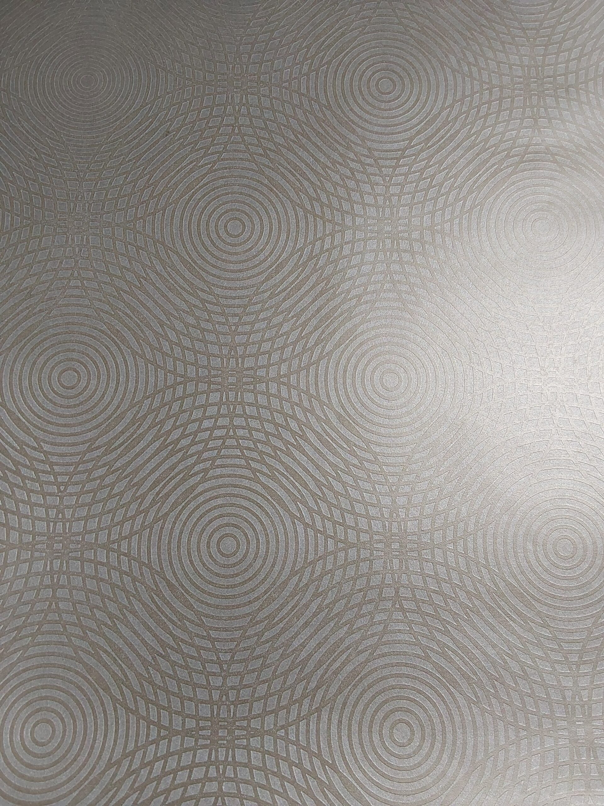 This exquisite wallpaper features a captivating design that seamlessly blends modern artistry with sophisticated elegance. The focal point is a mesmerizing array of concentric circular patterns, meticulously arranged to create a rhythmic and hypnotic visual experience. Each set of circles is intricately defined, alternating between broad arcs and delicate lines that converge to form a stunning geometric composition. This layering of forms conjures a sense of depth, giving the impression of movement and fluidity across the surface.