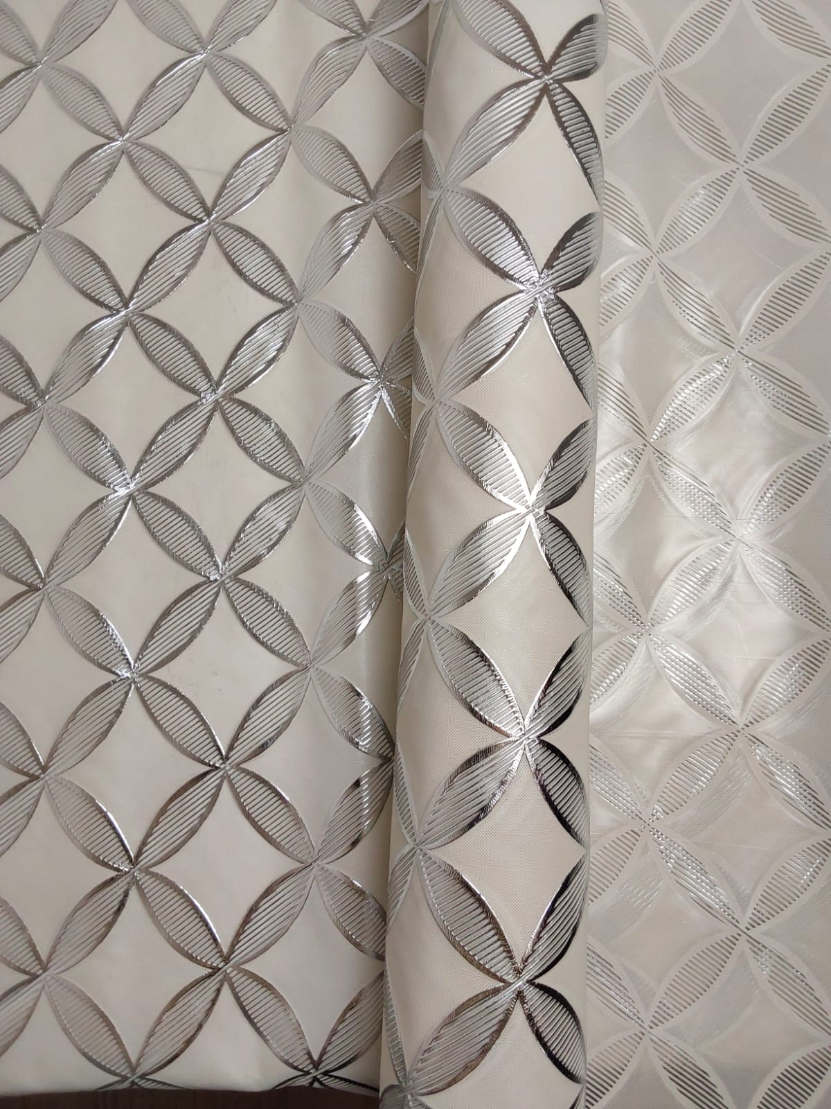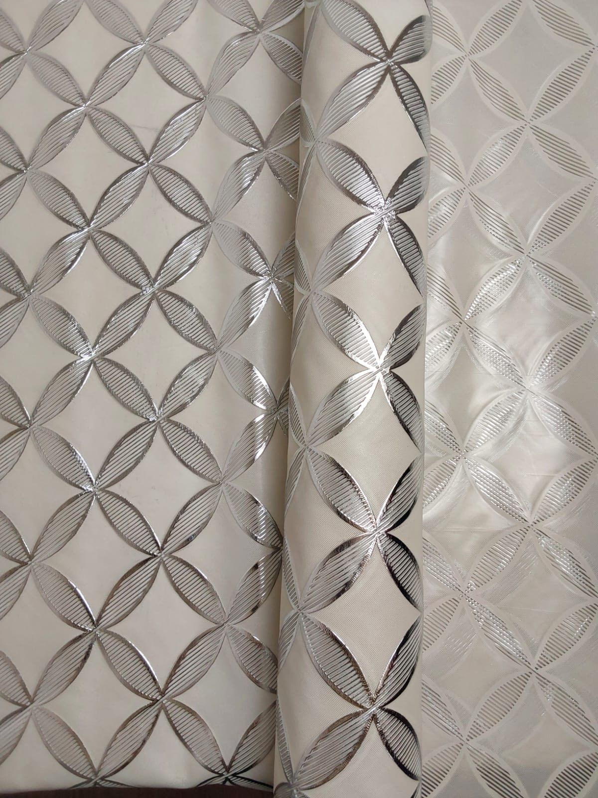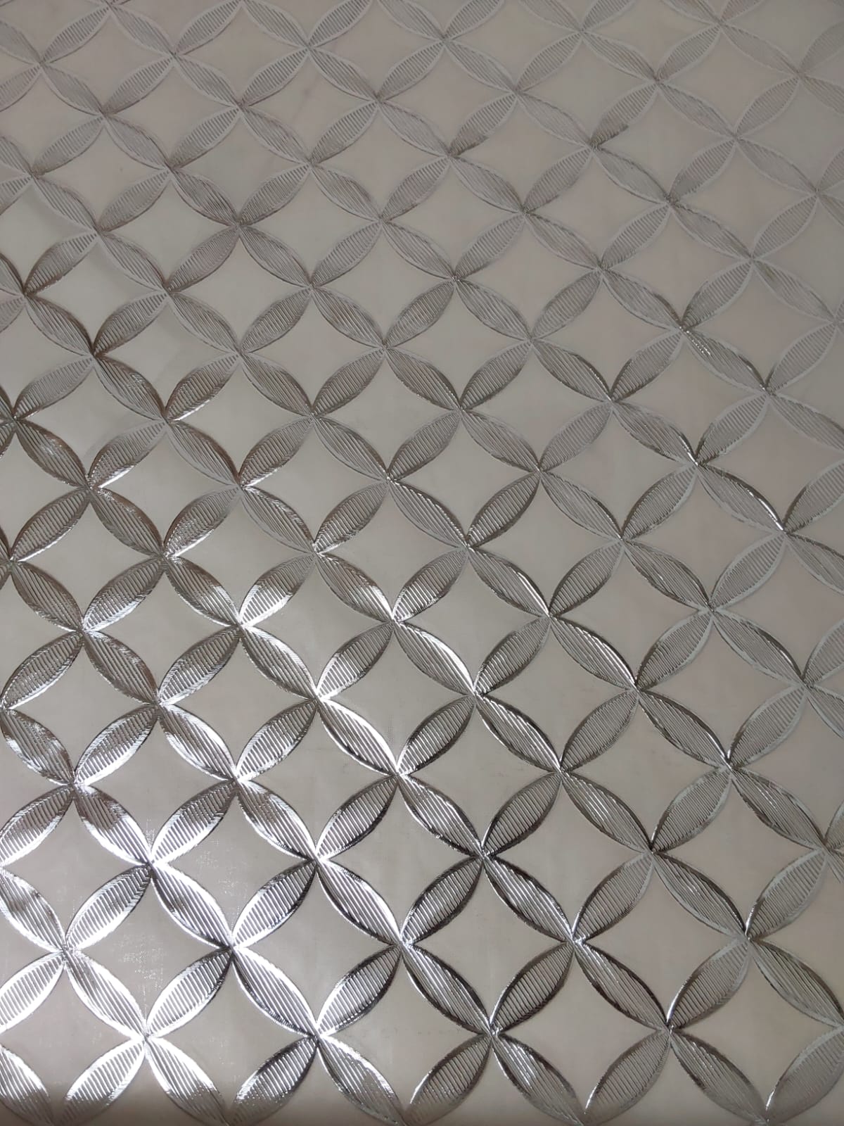 This chic tablecloth features a stunning silver and cream design, showcasing an elegant interwoven pattern. The shimmering accents add a touch of sophistication, making it ideal for both formal occasions and everyday dining. Made from durable and easy-to-clean material, this tablecloth combines style and practicality, effortlessly enhancing your table decor while protecting your surfaces. Perfect for adding a refined touch to any dining space!