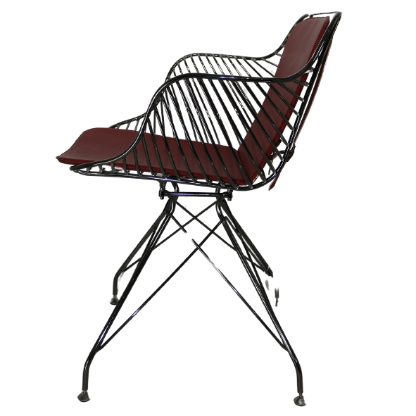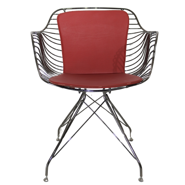 Whether you are hosting guests or seeking a comfortable and stylish seat for everyday use, this metal frame chair with red cushioning will not disappoint. It’s a piece that captures attention without overwhelming the space, a perfect balance of form and function.[/vc_column_text][/vc_column][/vc_row]