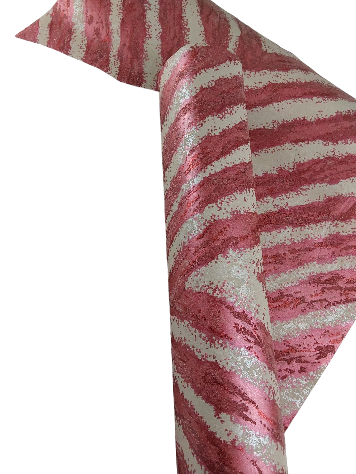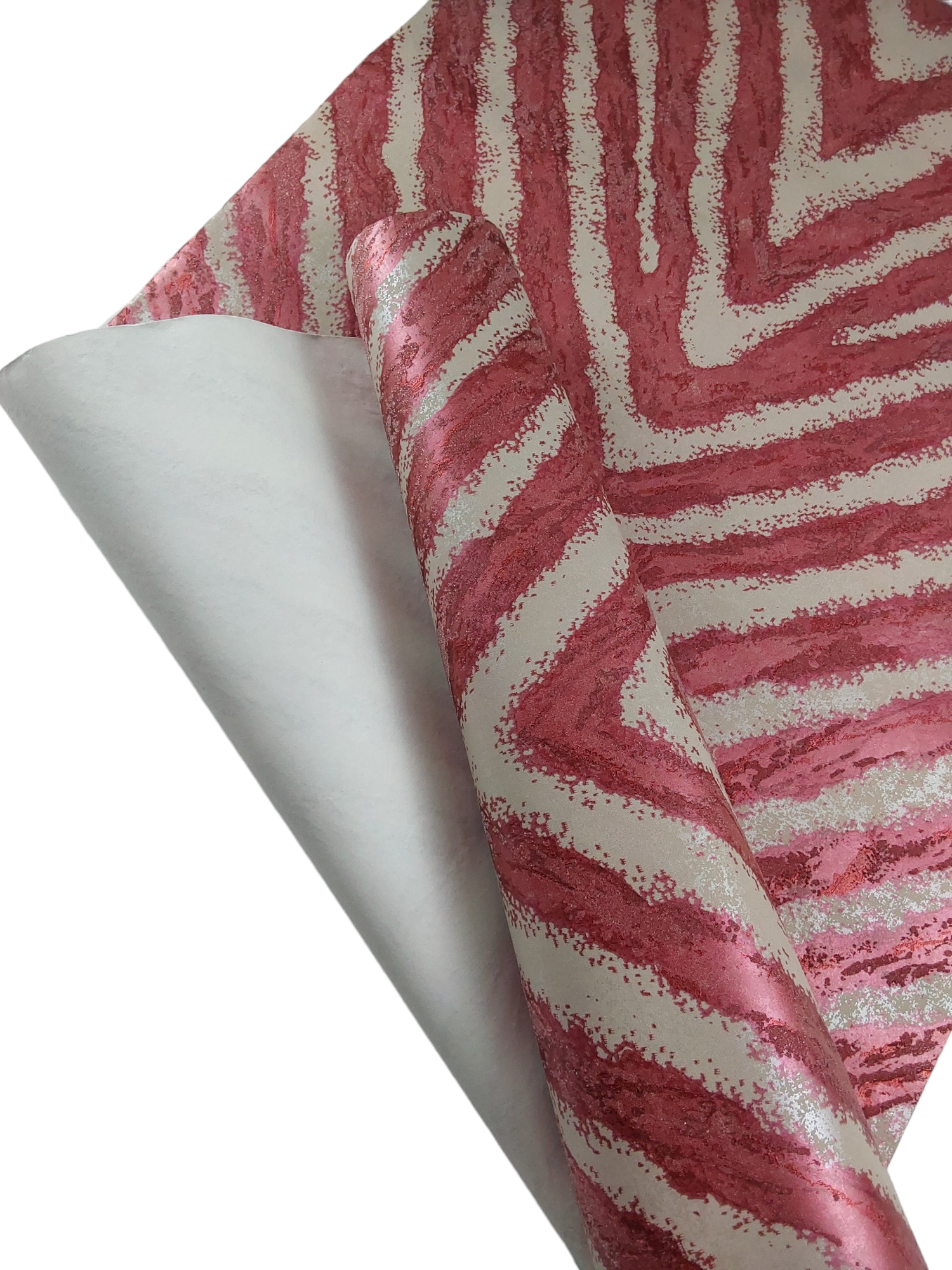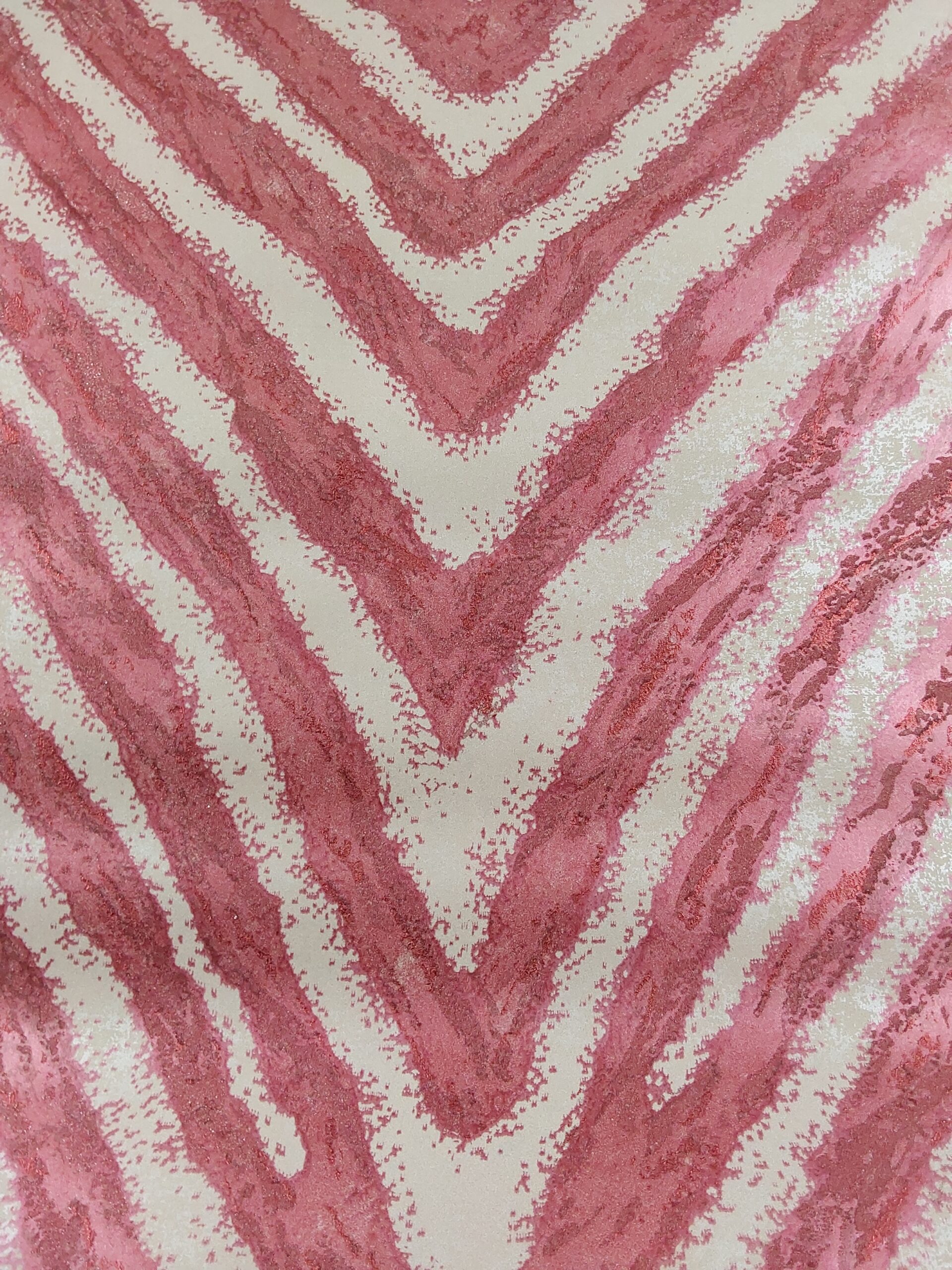 This wallpaper showcases a bold zigzag pattern in soft pink hues, accented by creamy white lines. The textured design creates a dynamic and playful look, making it an ideal choice for adding a cheerful touch to any room.