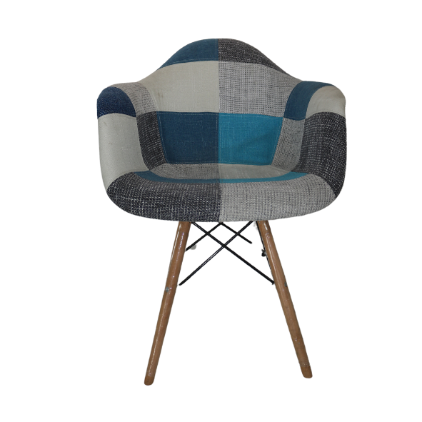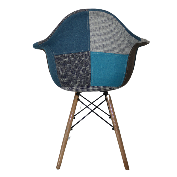 Introducing the Vapour Blue Patched Armchair – an eclectic mix of comfort and captivating design that brings a fresh perspective to any interior. This chair boasts a modern, bucket-style seat, upholstered in a harmonious patchwork of blue hues and patterns that invoke a serene yet spirited ambiance.