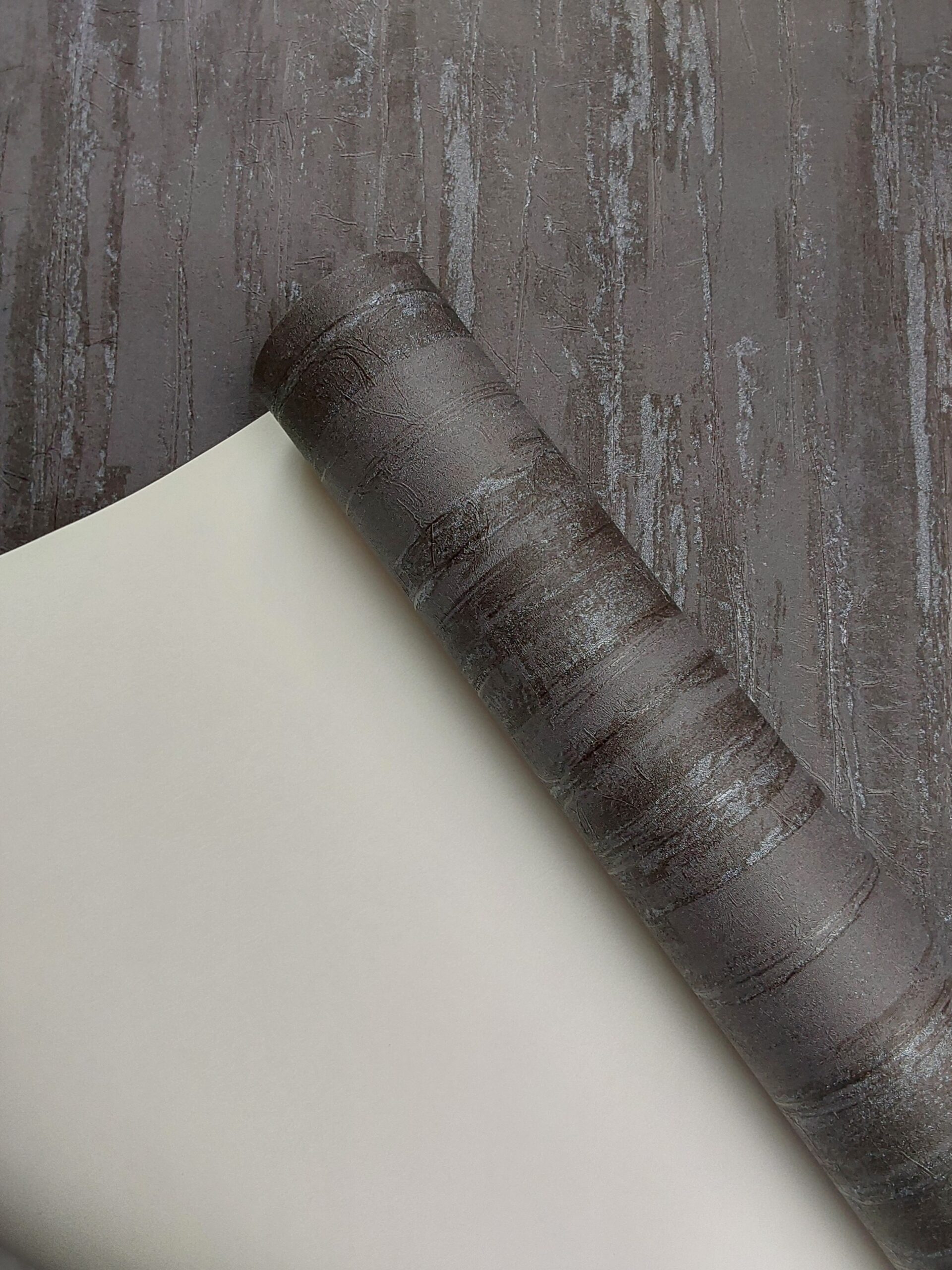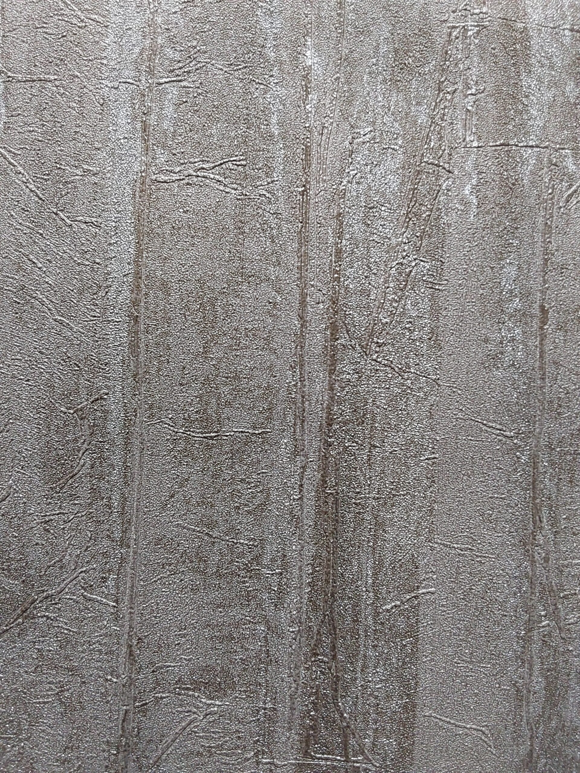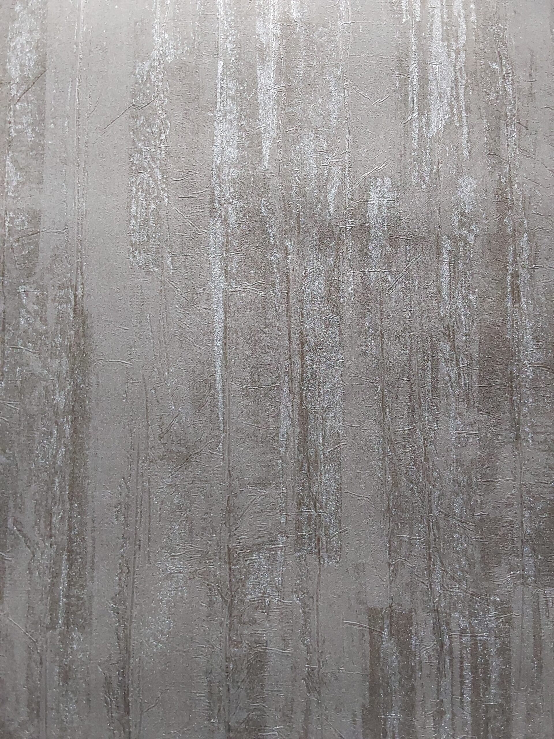 This wallpaper features a textured design in soft, muted beige tones. The surface presents a combination of horizontal and vertical lines, reminiscent of natural wood grain or a weathered surface. The subtle shimmer enhances its depth and lends a contemporary feel, making it a versatile choice for various interior styles. The overall effect creates a warm and inviting atmosphere, perfect for living rooms, bedrooms, or dining areas.