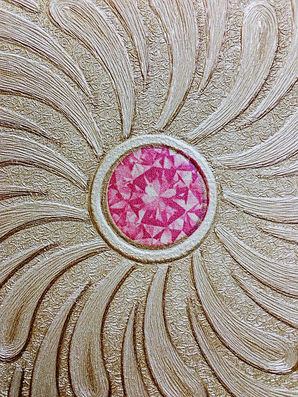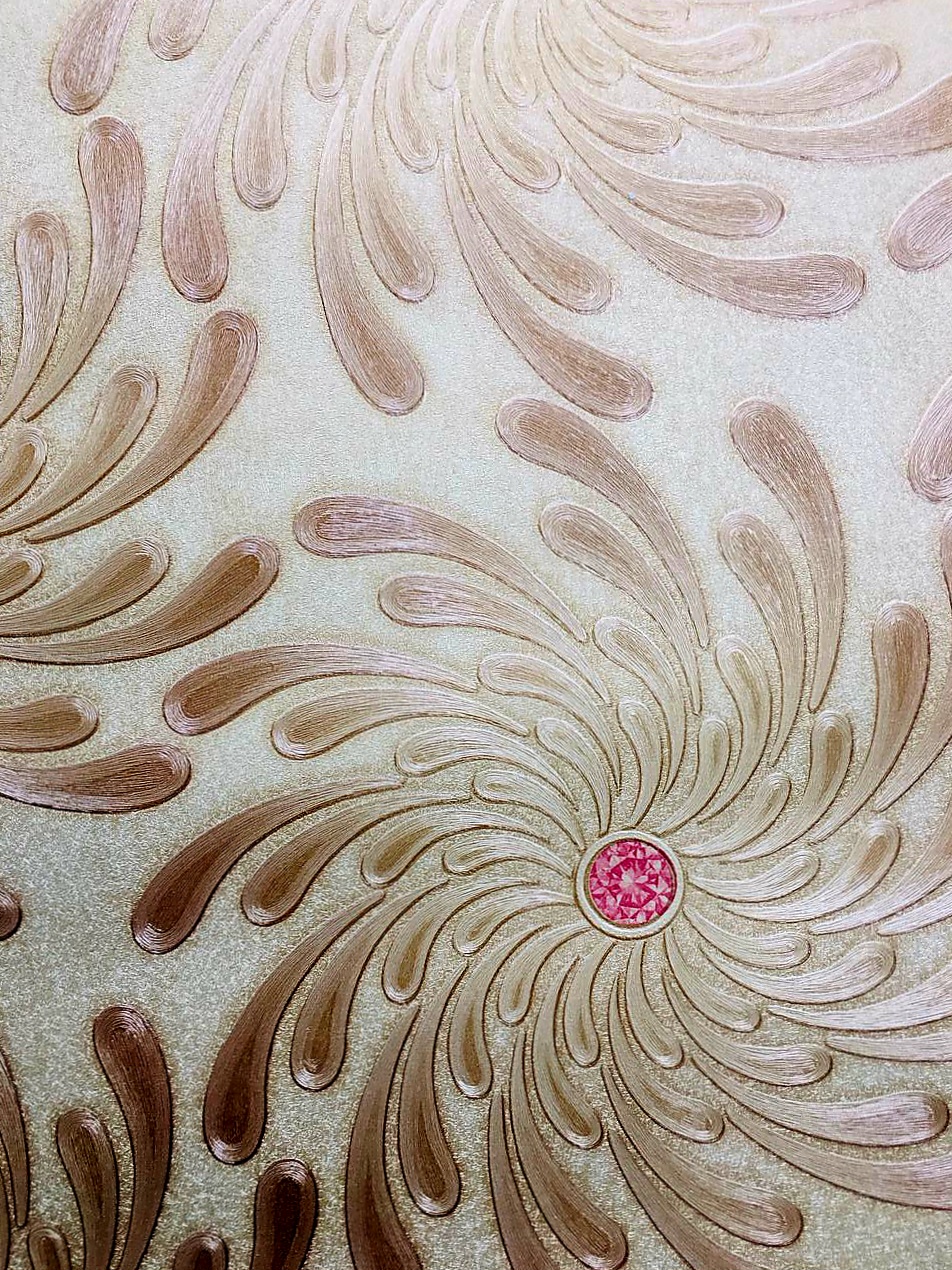 This wallpaper showcases a beautiful and intricate design that combines elegance and vibrancy. Featuring swirling floral motifs in soft shades of pink and gold, the pattern creates a sense of movement and dynamism on the wall.Our target market are Homeowners,Interior Designers and Renovators.elegant and whimsical.