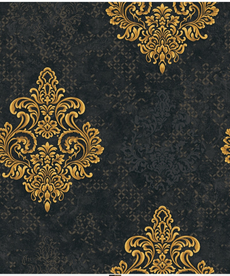 This striking black and gold damask wallpaper is the epitome of luxury and sophistication, making a bold statement in any space. The rich, deep black background serves as a dramatic canvas for the radiant gold damask pattern, which features intricate motifs that swirl and flow gracefully. This captivating contrast creates an opulent effect, instantly drawing attention and adding a sense of grandeur to your decor.